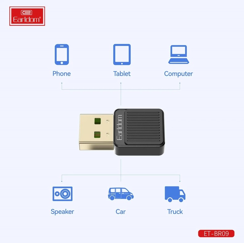 دانگل بلوتوث ارلدام مدل BR09 یک گزینه عالی برای اتصال بی‌سیم گوشی‌های iOS و Android به ضبط خودرو و دیگر پخش‌کننده‌های صوتی دارای درگاه USB است. این دانگل با بلوتوث نسخه 5.2، اتصال پایدار و بدون تأخیر را تا برد 10 متر فراهم می‌کند. همچنین، نصب و استفاده از آن بسیار آسان بوده و نیازی به اپلیکیشن یا نرم‌افزار جانبی ندارد.