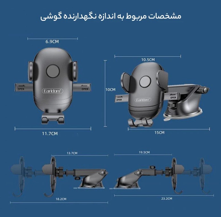 ✅ بازوهای قابل تنظیم برای نگهداری محکم گوشی