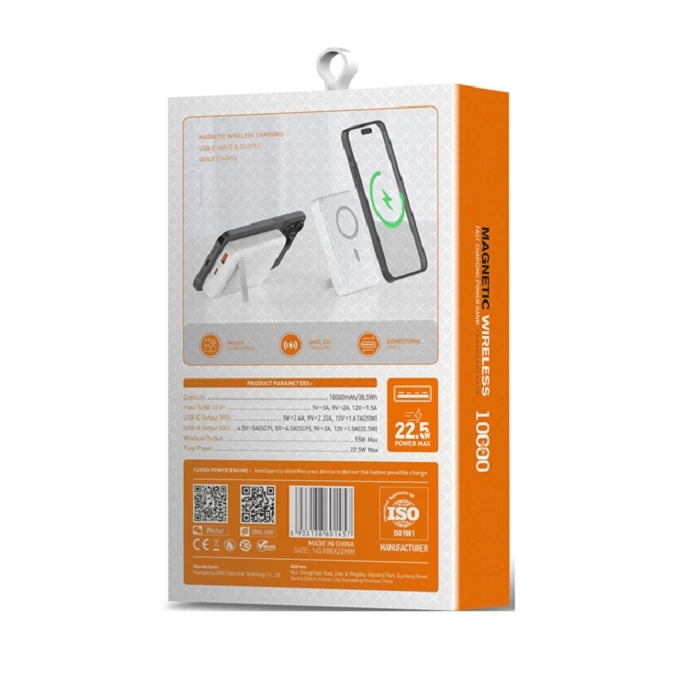 ظرفیت 10000 میلی‌آمپر ساعتی این پاوربانک، به شما اجازه می‌دهد تا چندین بار دستگاه‌های مختلف خود را شارژ کنید، از جمله تلفن‌های همراه، تبلت‌ها و دیگر دستگاه‌های الکترونیکی. یکی از ویژگی‌های بارز این مدل، پشتیبانی از فناوری شارژ سریع (Fast Charge) است که زمان شارژ دستگاه‌های شما را به حداقل می‌رساند. این مدل دارای دو پورت خروجی USB-A و یک پورت ورودی/خروجی USB-C است که به شما امکان شارژ همزمان چند دستگاه را می‌دهد.