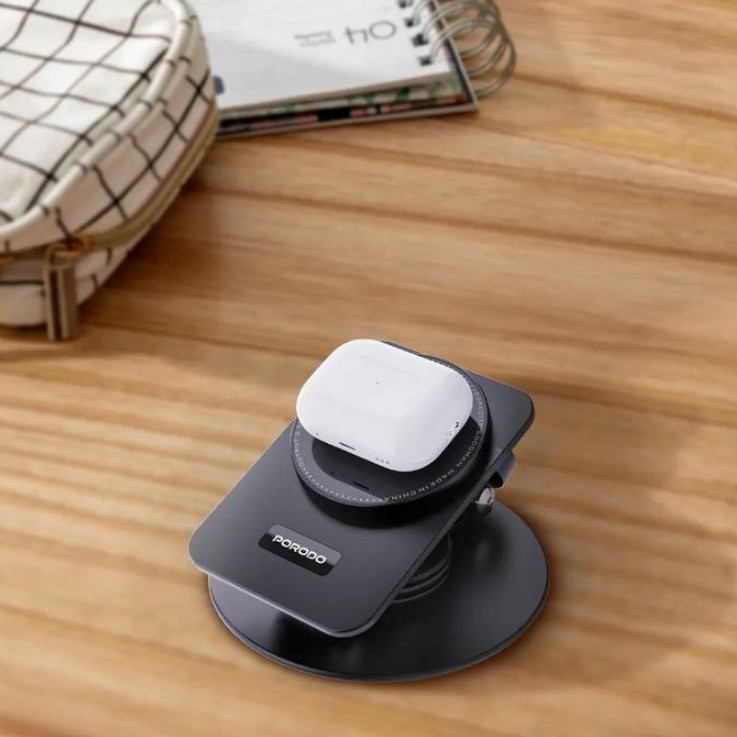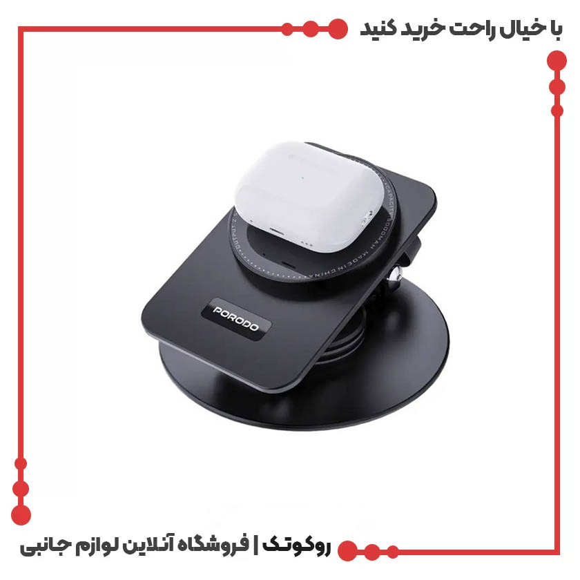 استند وایرلس ۳ کاره پرودو مدل FWC035 یک محصول کاربردی و مدرن است که هم نقش یک هولدر رومیزی شیک را ایفا میکند و هم امکان شارژ بیسیم گوشی و سایر دستگاههای شما را فراهم میسازد. این استند با طراحی جمعوجور و کیفیت ساخت بالا از برند معتبر Porodo ساخته شده و انتخابی ایدهآل برای کسانی است که به دنبال ترکیب زیبایی، کارایی و تکنولوژی در یک گجت هستند.