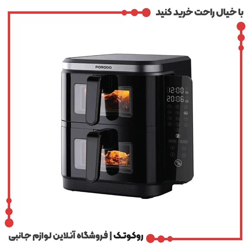 خرید هواپز ۱۱ لیتری پرودو مدل Double Stack راهی هوشمندانه برای ورود به دنیای آشپزی سالم، سریع و بدون روغن است. طراحی دو طبقه، ظرفیت بالا، توان فوقالعاده، کنترل لمسی و تنظیمات دقیق دما و زمان، این محصول را به یکی از بهترین انتخابها برای آشپزخانههای مدرن تبدیل کرده است. اگر به دنبال یک دستگاه همهکاره و پیشرفته هستید، این مدل دقیقاً همان چیزی است که نیاز دارید.