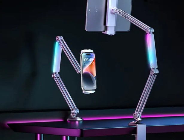 هولدر رومیزی پرودو مدل Multi-Joint Aluminum با طراحی مقاوم، قابلیت تنظیم زاویه ۳۶۰ درجه، نورپردازی RGB و سازگاری بالا با گوشی و تبلت، گزینهای عالی برای استفاده روزمره، استریمینگ و تماسهای ویدیویی محسوب میشود.